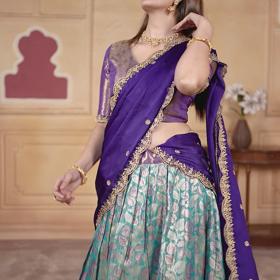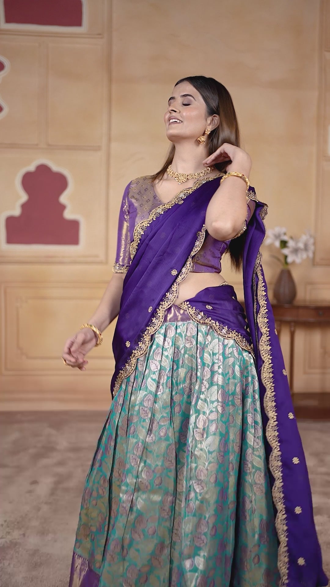 Purple & Teal Banarasi Silk Lehenga Choli with Golden Zari Weaving | Wedding & Traditional Wear